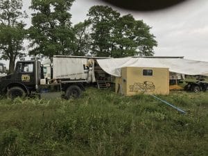 Nachdem wir heute Morgen den Umzug ins neue Camp abgeschlossen hatten ging es gleich zur ersten Tagesetappe. Vorstart war in Szczecinek auf dem Marktplatz um der Öffentlichkeit etwas Rallye Sport zu präsentieren. Leider gab es während der Etappe dann Probleme mit der Kupplung und mit dem Zündschloss. Das Service Team wurde kurz per Handy informiert und konnten so schon die passenden Ersatzteile für die kurze Service-Pause zwischen den Etappen zurechtlegen. Nach Ankunft im Service Bereich konnten wir alle Probleme notdürftig beseitigen und nach nur 30 Minuten ging es auf die zweite Etappe. Heute Abend steht also ein großer Service an…😊