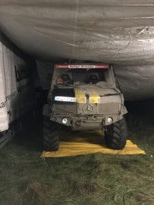 Ein kleiner Wehrmutstropfen hatte der Tag dann doch – kleines Missverständnis mit einem Tatra Fahrer – und schon hatte unser Unimog ein etwas zerknautschtes Gesicht. 😕